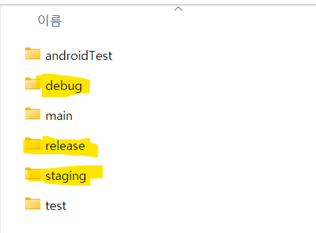 나는 `debug`/`staging`/`release` 세가지로 나눴기 때문에 폴더를 세개 만들었다.